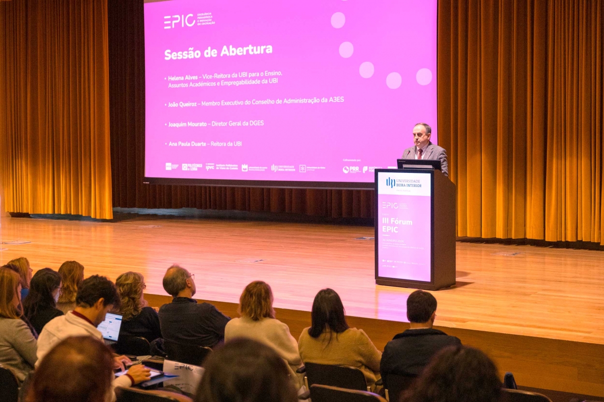 A Universidade da Beira Interior (UBI) acolheu, no dia 30 de janeiro de 2026, o III Fórum EPIC – Excelência Pedagógica e Inovação em Cocriação, um encontro de âmbito nacional dedicado à reflexão, partilha e cocriação de práticas inovadoras no ensino superior. A iniciativa integrou-se nas actividades do Consórcio EPIC e reuniu docentes, investigadores e outros profissionais ligados à inovação pedagógica provenientes de várias instituições públicas de ensino superior.